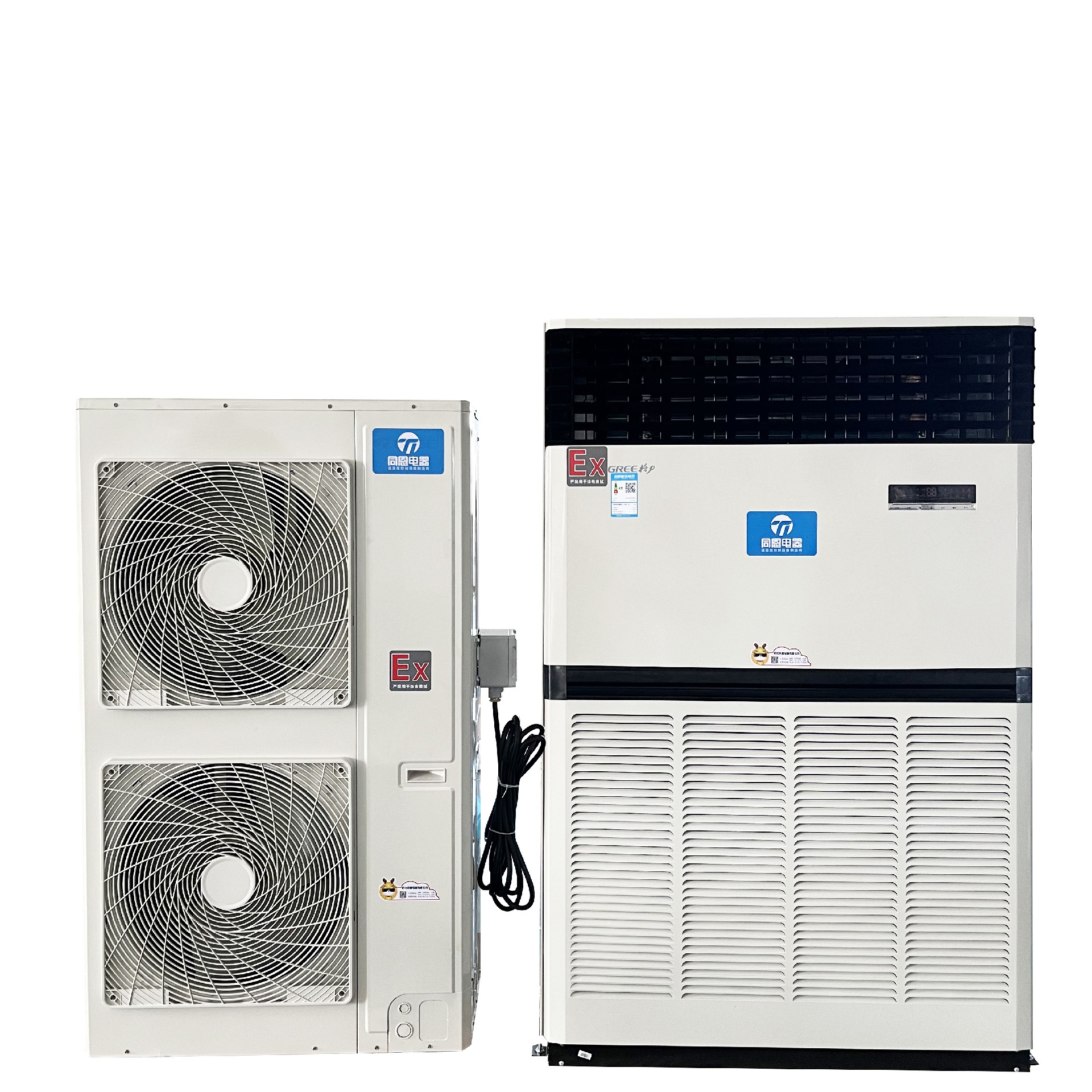 屋頂式防爆空調(diào)機組 全新風(fēng)防爆空調(diào)機 屋頂式空調(diào)系統(tǒng)為全空氣系統(tǒng),整個空調(diào)系統(tǒng)僅由室外主機和室內(nèi)送風(fēng)管兩部分組成,無需水泵、冷卻塔、風(fēng)機盤管等配套設(shè)備,亦無需冷凝排水管道,安裝使用極為方便。系統(tǒng)室內(nèi)無運動機械和水管,用戶無需為噪音和漏水煩惱,維修方便。機組置于屋頂或戶外空地,無需機房,節(jié)省初投資。機組不需二次冷媒,系統(tǒng)效率高。機組配上不同的功能段,可方便實現(xiàn)空氣凈化、除濕、加濕、降溫、供暖、新風(fēng)量調(diào)節(jié)等多種功能。