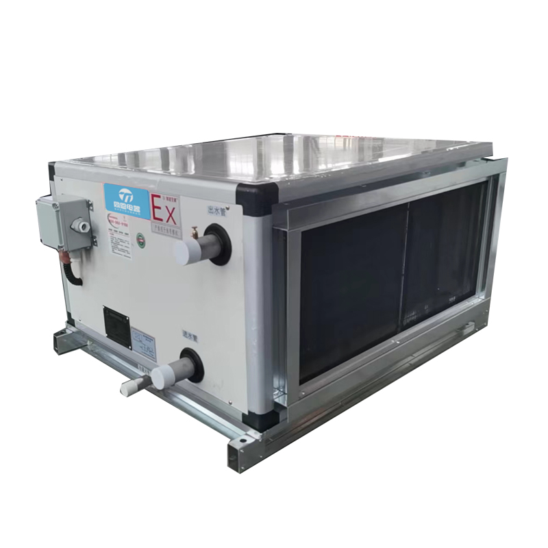 水冷型吊頂式防爆空調(diào)機(jī)組 吊頂式空氣處理機(jī)組適用于阻力大于100的空調(diào)系統(tǒng),是一種集中式空氣處理系統(tǒng),它起源于設(shè)備集中設(shè)置,