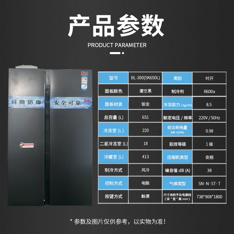 左右開門防爆冰箱系列機型通過特殊防爆技術加工處理,廣泛應用于國防、科研、石油、化工、醫(yī)藥、加工制造、生物等存在ⅡA、ⅡB、IIC級,T1~T4組可燃性氣體、蒸汽與空氣混合形成的易引發(fā)爆炸的危險場所,是針對有溫度控制要求場所設計的特種防爆冰箱,防爆冰箱BL系列產品均通過國家防爆電氣產品質量監(jiān)督檢測中心檢驗,獲得國家防爆電氣設備防爆合格證CNEx22.2564X;其外形美觀,設計合理并具有安裝維修方便等特點,全系列防爆冰箱內部采用壓縮機、微電腦控制、數(shù)字顯示,具有噪聲低、性能穩(wěn)定、操作簡便等優(yōu)點。深受廣大特需行業(yè)客戶喜愛,并以部分錄入特需行業(yè)定點采購名錄。